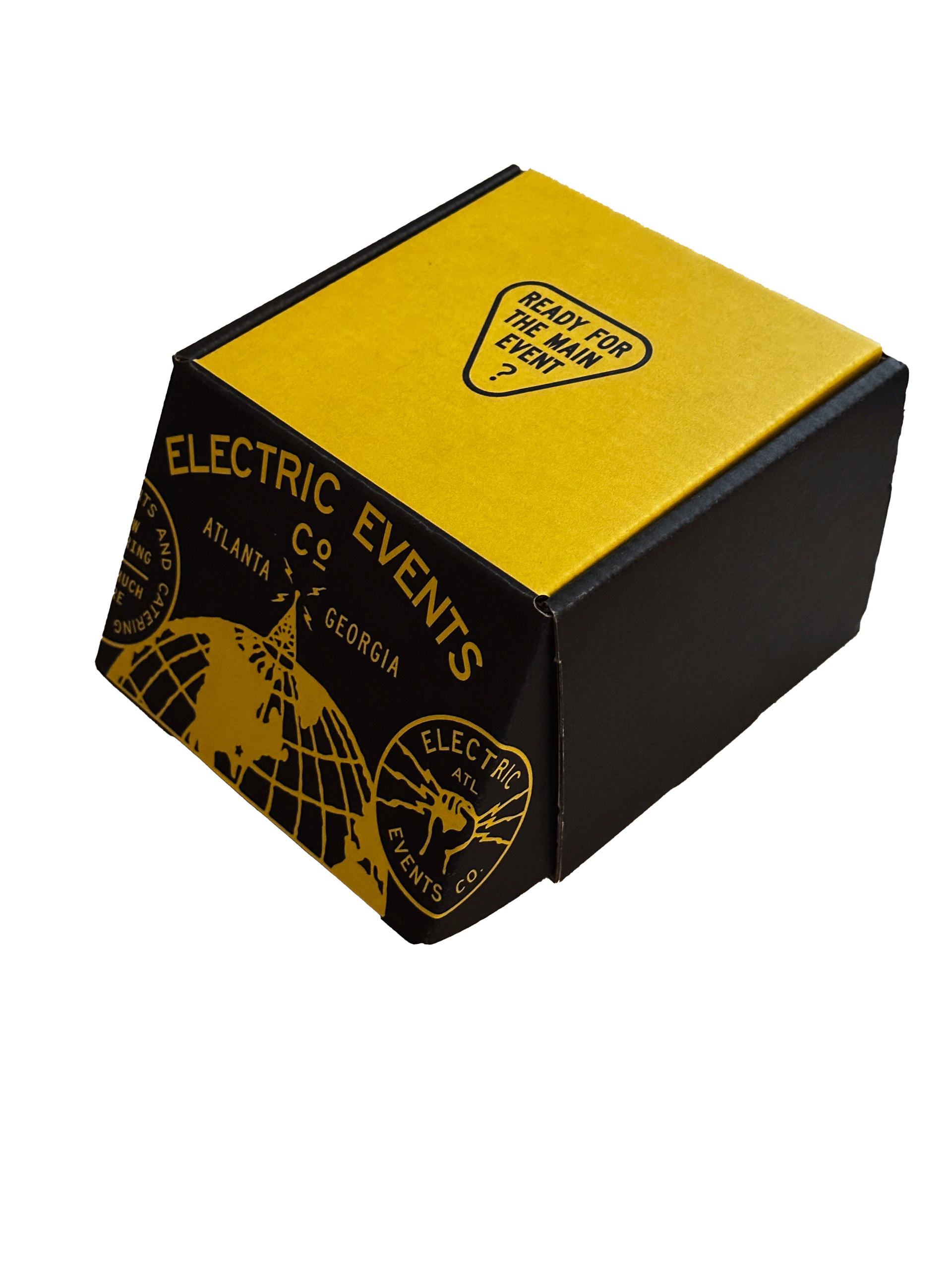 Here, I made a shippable gift box for Electric Events Co. to send as a thank you to clients- the one they mailed me was empty, though :(
